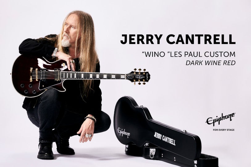 Every inch of the Epiphone Jerry Cantrell 'Wino' Les Paul Custom has been directly inspired by Cantrell's own iconic Les Paul Custom. Affectionately dubbed 'Wino' because of the Dark Wine Red paint-job, this maple-topped treat features a nine-hole weight-relief design; pushing the playing comfort through the roof, while the Alnico Classic PRO™ humbucker at the neck and the 98T PRO humbucker at the bridge team up to supply a tasty and warm foundation sound. Smaller yet no-less-important details include the JJ-logo stamped on the rear of the headstock and the Jerry Cantrell signature artfully scrawled across the truss rod cover.