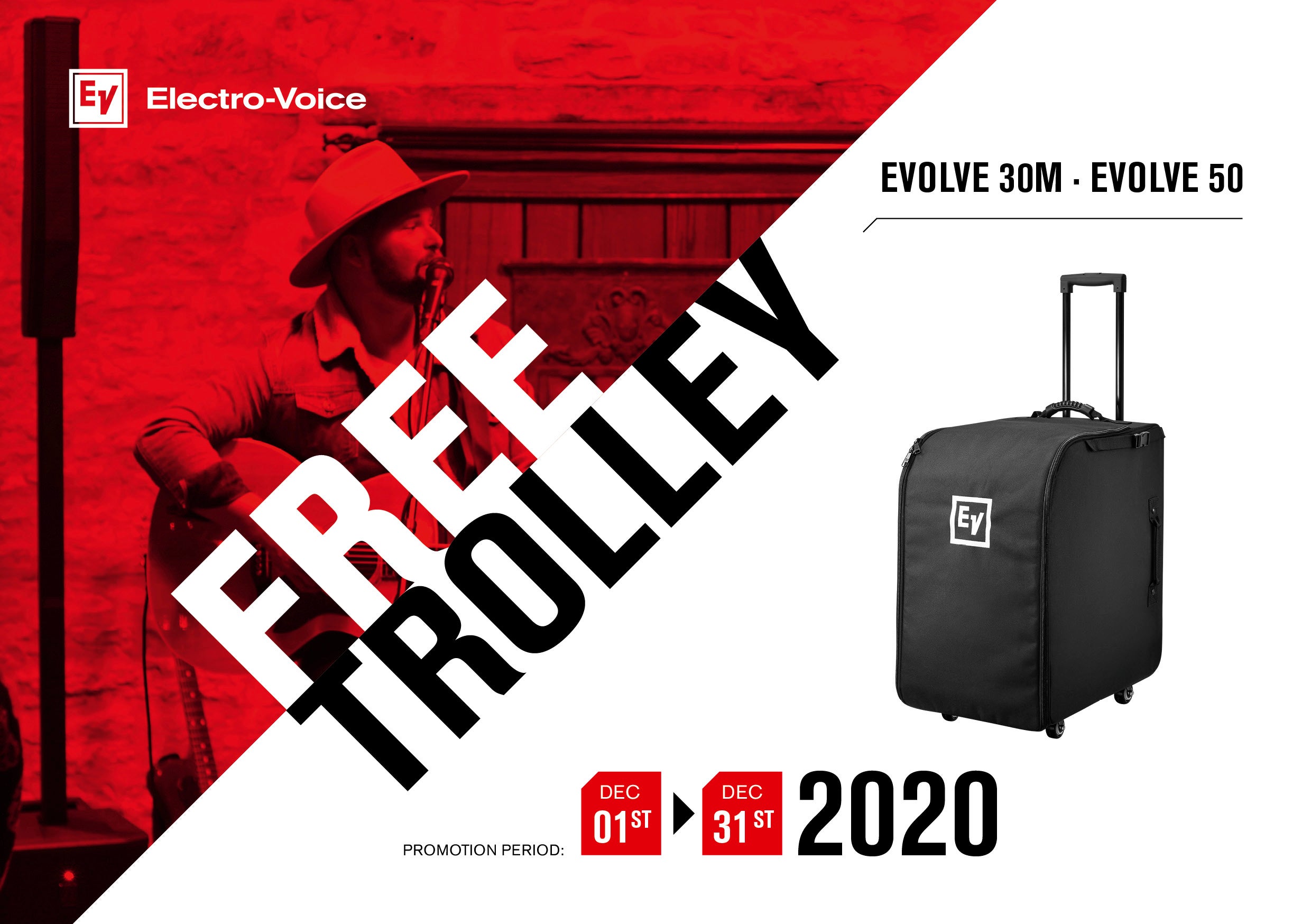 Following a successful run, Electro-Voice extend last month's promotion and give you a free Rolling Case if you order a Evolve 30M or Evolve 50 speaker system before the year 2020 comes to a close. Best part of all? You won't have to put in any extra effort to get your hands on that free trolley! Read on to find out more.