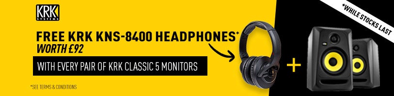 Can't decide between getting a new set of studio monitors or a fresh pair of headphones? There's no need, because this month, it's KRK's treat: order a set of KRK Rokit Classic 5 studio monitors now and you'll get a free pair of KRK KNS-8400 studio headphones on top! Read on to learn more.