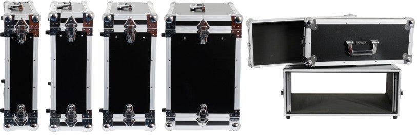 There are also a number of double-door flight cases that are 23 or 35 cm deep so that you can choose the one that suits your rack equipment best. They have built-in sliding rails for mounting your equipment and rackware is included as well.