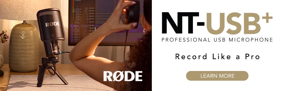 Released just several years back, the RØDE NT-USB acquired a legendary status in no-time, courtesy of excellent performance, a thoughtful bundle of accessories and a more than fair price. Now, it's time to welcome its even-more-potent successor: meet the RØDE NT-USB+. |
