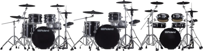 The Roland VAD Series currently includes three drum kits: the VAD506, the VAD503 and the VAD306. Let's quickly go over the biggest differences. The VAD506 is essentially the flagship model here and boasts a full configuration including three toms and four cymbal pads. The VAD503 comes with one less rack tom and crash-pad, but both kits do feature a TD-27 drum module and a most impressive 18" CY-18DR ride cymbal. Lastly, the VAD306 is the more budget-friendly model of the series and, as such, includes slightly smaller shells. That means you're still getting three toms and four cymbal pads, but the drum module has been swapped for a TD-17 while the CY-18DR crash-pad remains exclusive to the two other kits.